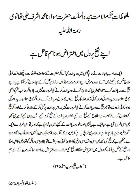اپنے شیخ پر دل میں اعتراض ہونا سم ِ قاتل ہے