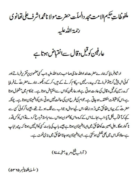 عارفین کو قیل و قال سے انقباض ہوتا ہے