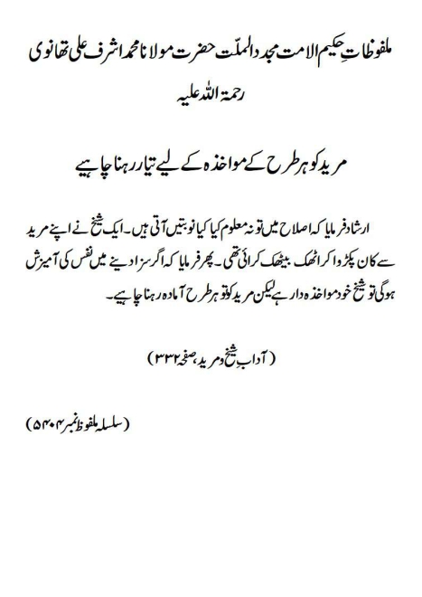 مرید کو ہر طرح کے مواخذہ کے لیے تیار رہنا چاہیے
